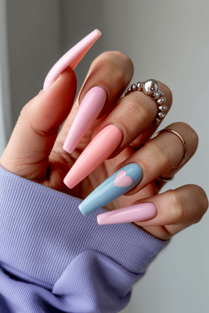 14. Pastel Heart Nails