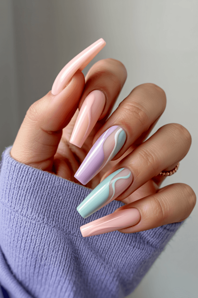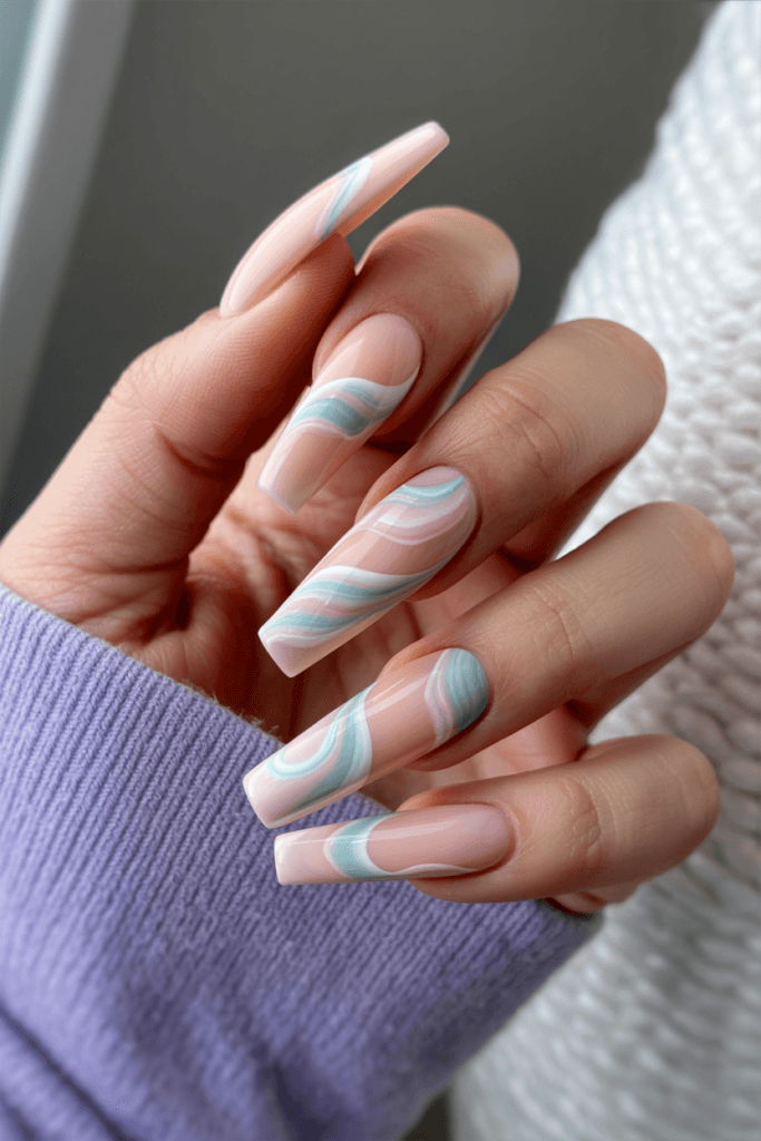 12. Pastel Swirl Nails
