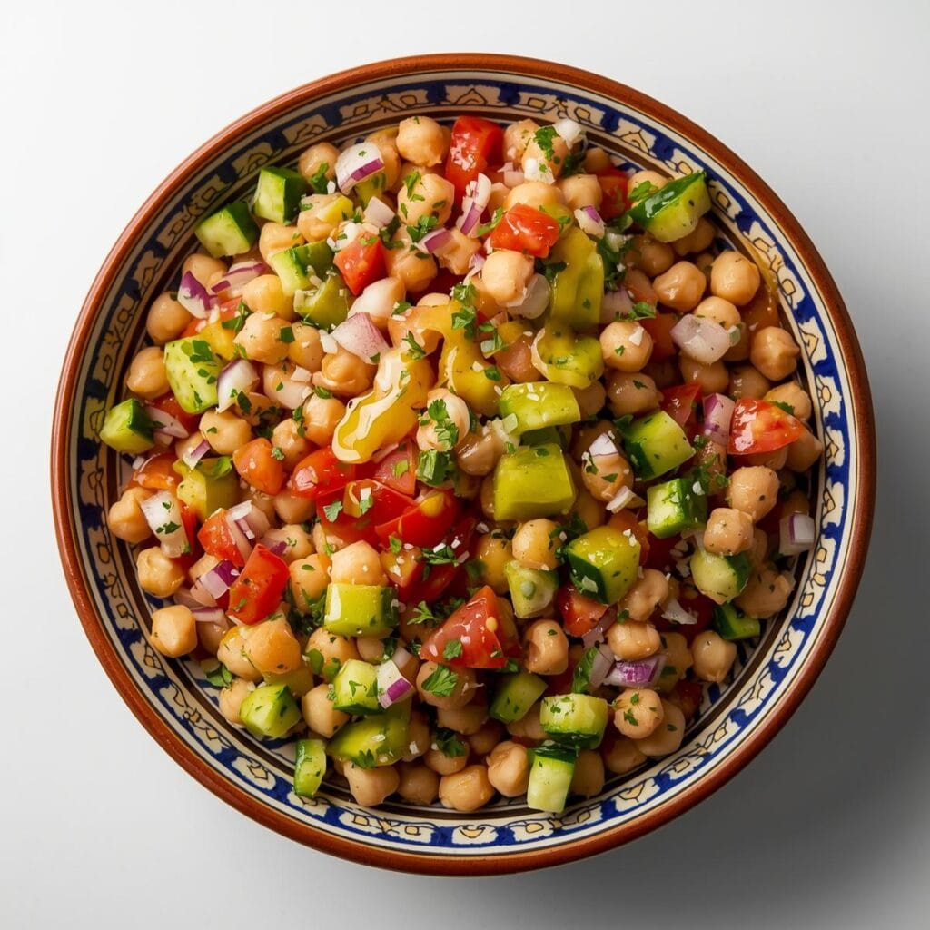 Zum Schluss rundet der Kichererbsensalat mit Tahina das Ganze ab – cremig, würzig und proteinreich. Mit etwas Knoblauch, Zitronensaft und Olivenöl entsteht ein nahrhafter Dip-Salat, der wunderbar zu Fladenbrot oder Grillgerichten passt.