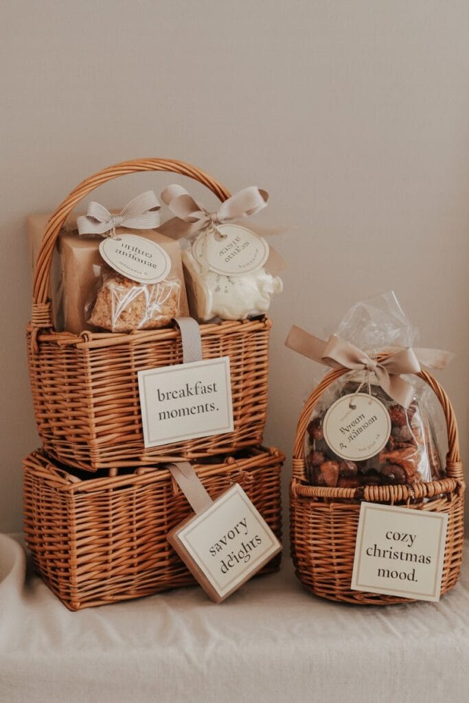 - Kleine Anhänger mit „Frohe Weihnachten“ oder Rezeptnamen