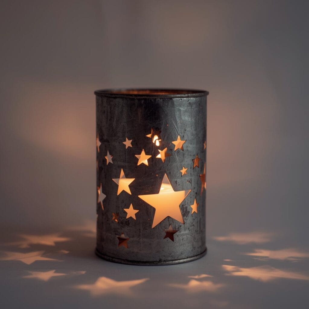 - Blechdosen: Mit Hammer und Nagel Sterne oder Muster einstanzen. Danach Kerze hineinsetzen.