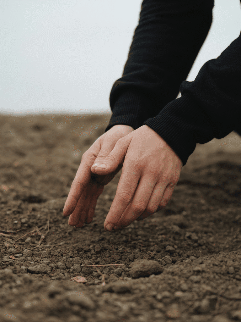 Unter der Erde entsteht neues Leben, Samen ruhen, Wurzeln atmen.