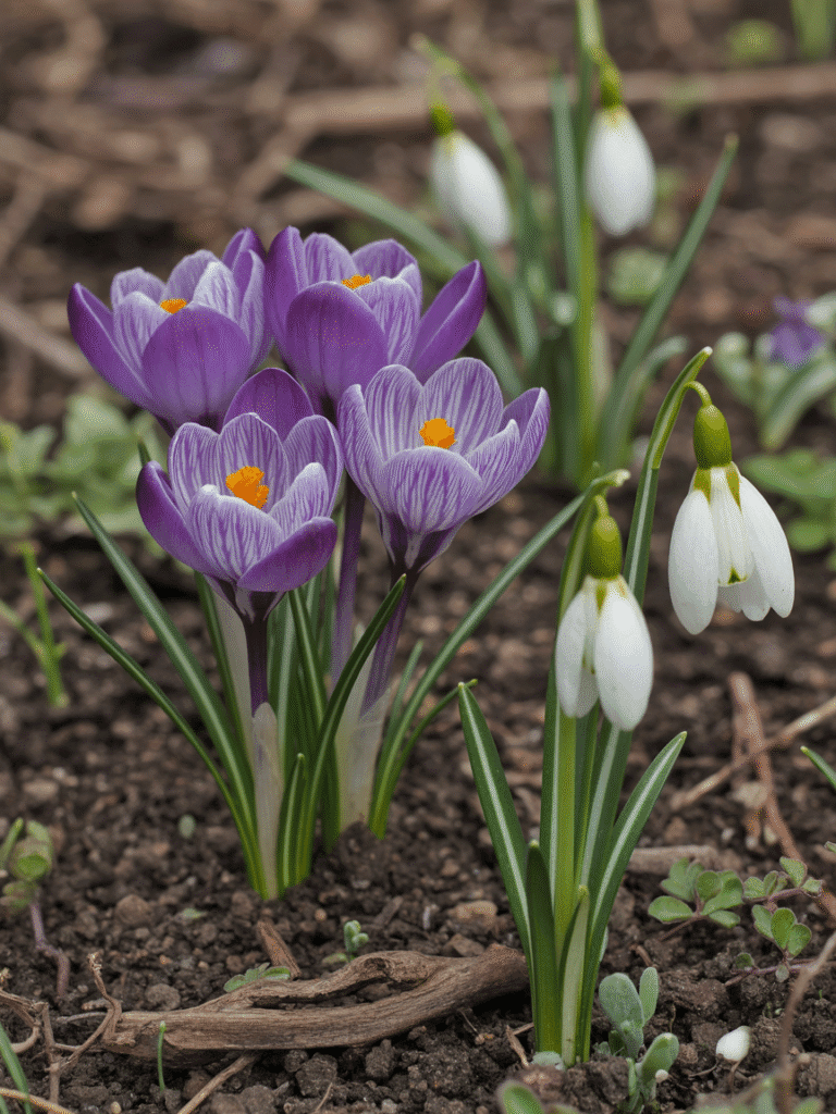 Im Spätwinter (Februar) kannst du Krokusse, Schneeglöckchen oder Winterlinge setzen.