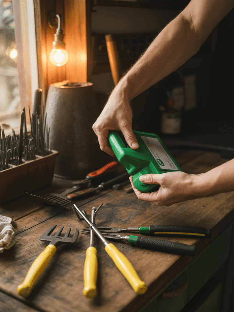 Nutze die ruhige Zeit, um Gartenwerkzeuge zu reinigen, zu schleifen und einzuölen.