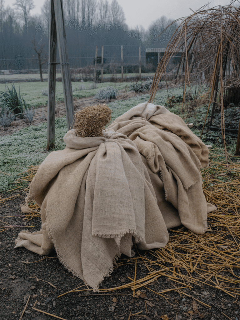 Kübelpflanzen kannst du mit Vlies oder alten Decken umwickeln.