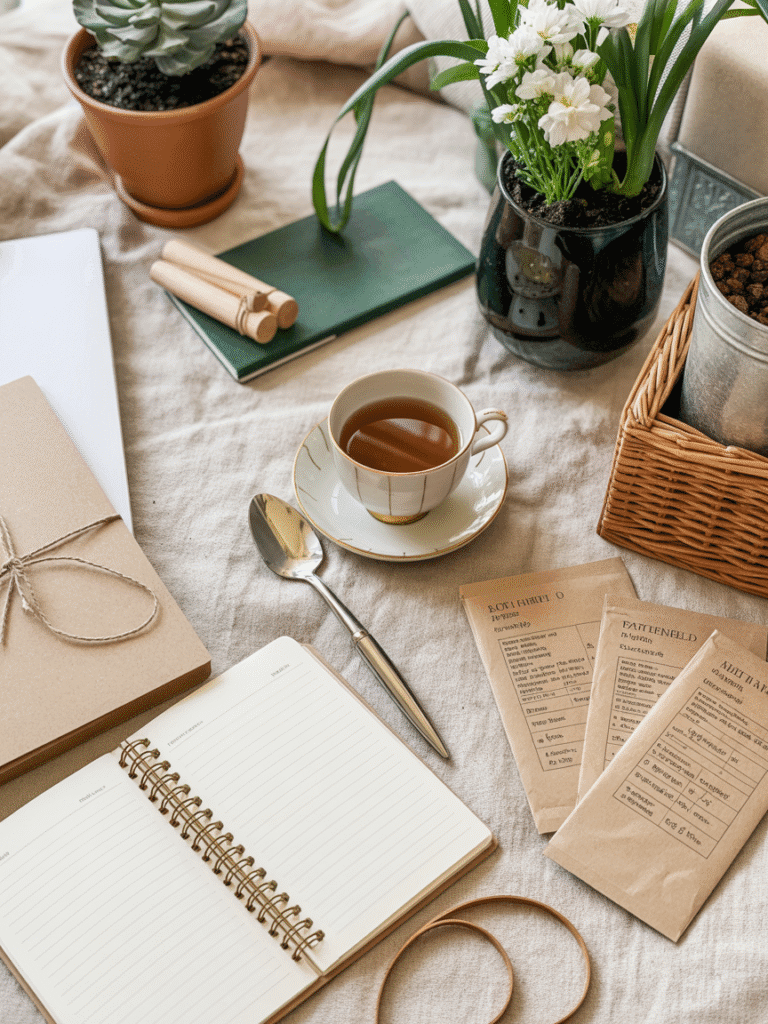 Ein wunderbarer Winterabend: Tee, Notizbuch und dein Saatgut.