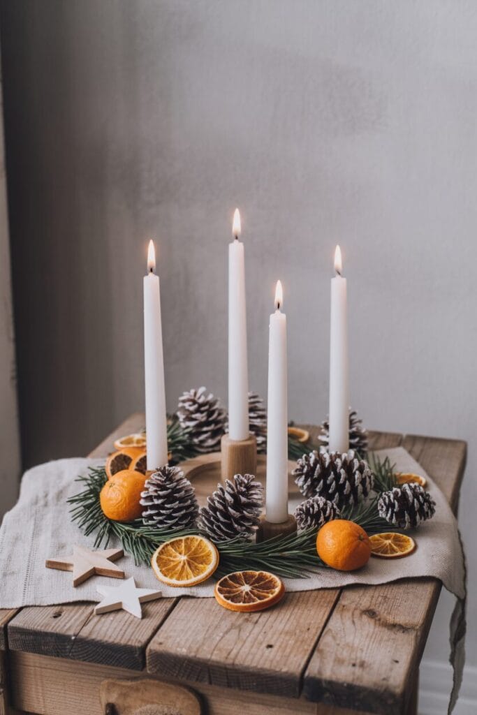 Nutze Naturmaterialien – Tannenzapfen, Holz, Orangenscheiben oder Eukalyptuszweige.