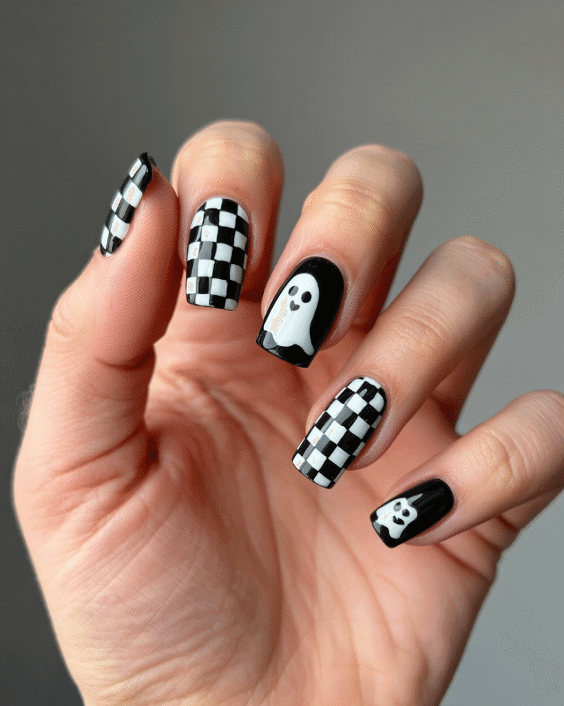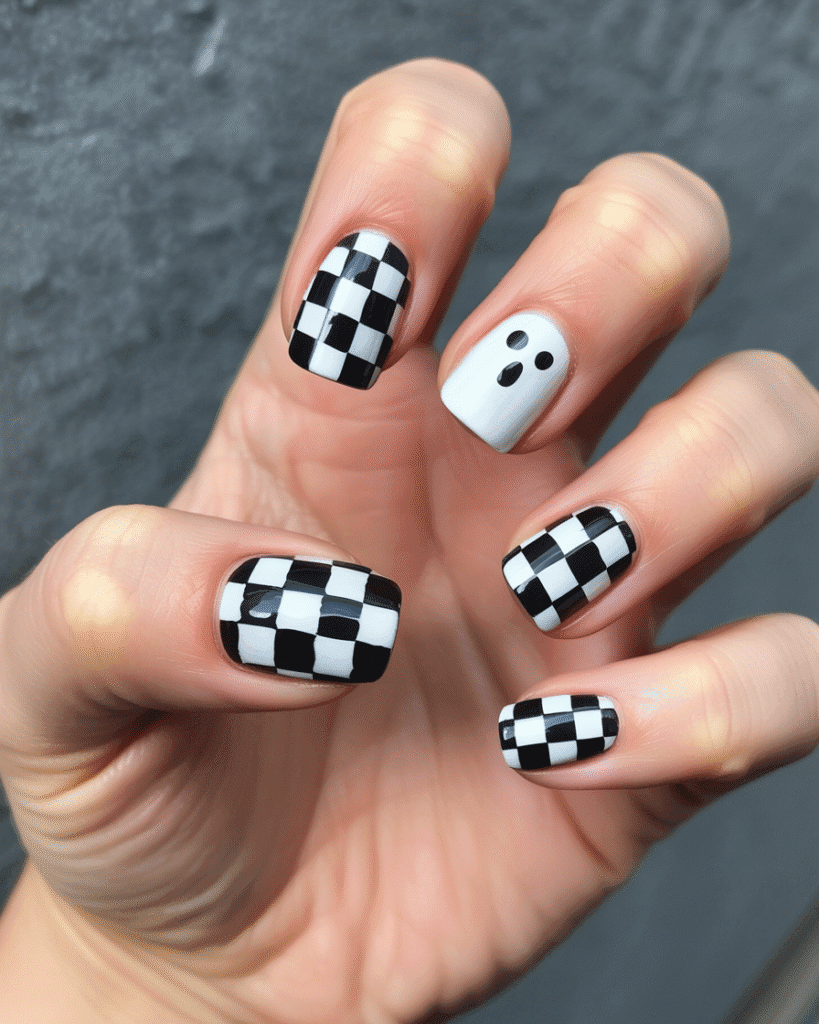 Checkerboard + Ghost Nails