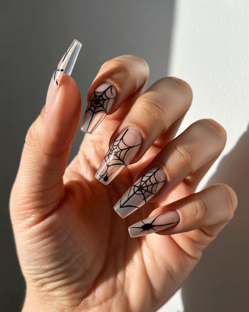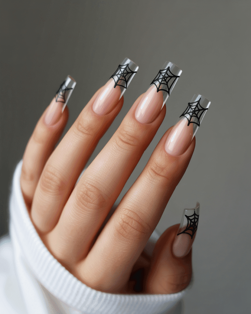Transparente Nägel mit 3D-Spinnweben