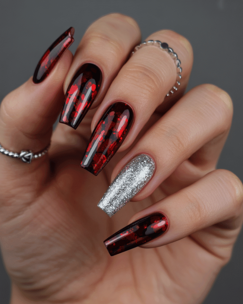 Glitzer-Vampire-Nails in Bordeaux & Silber