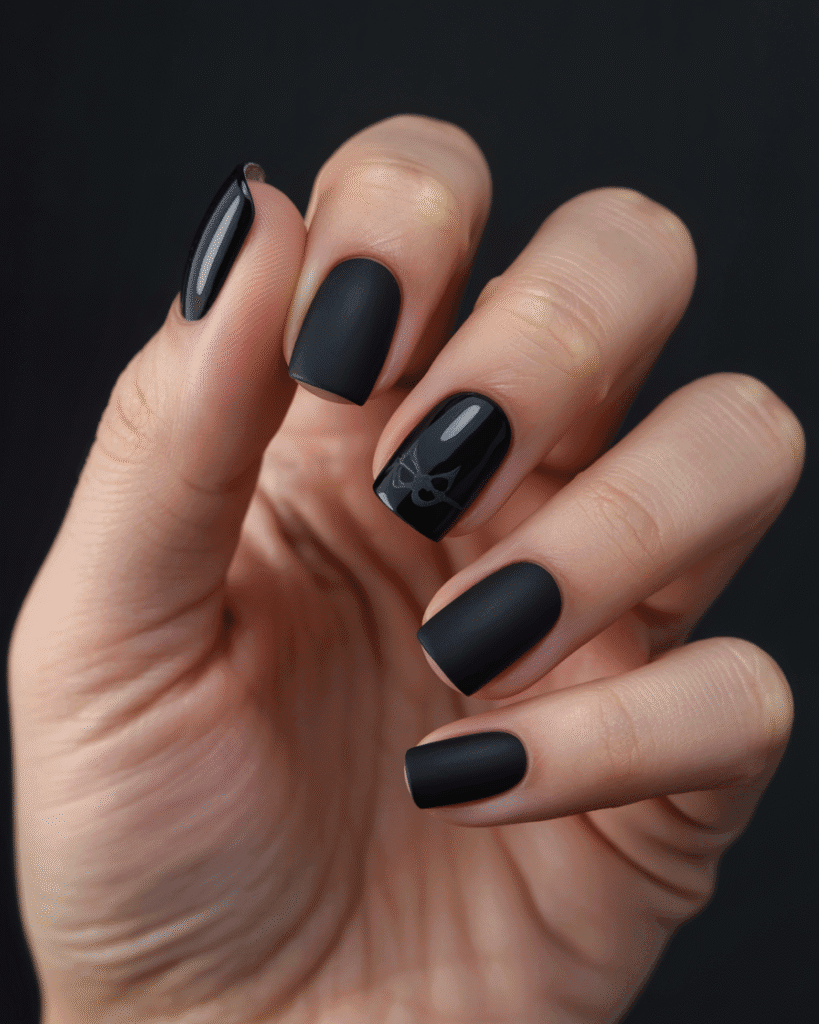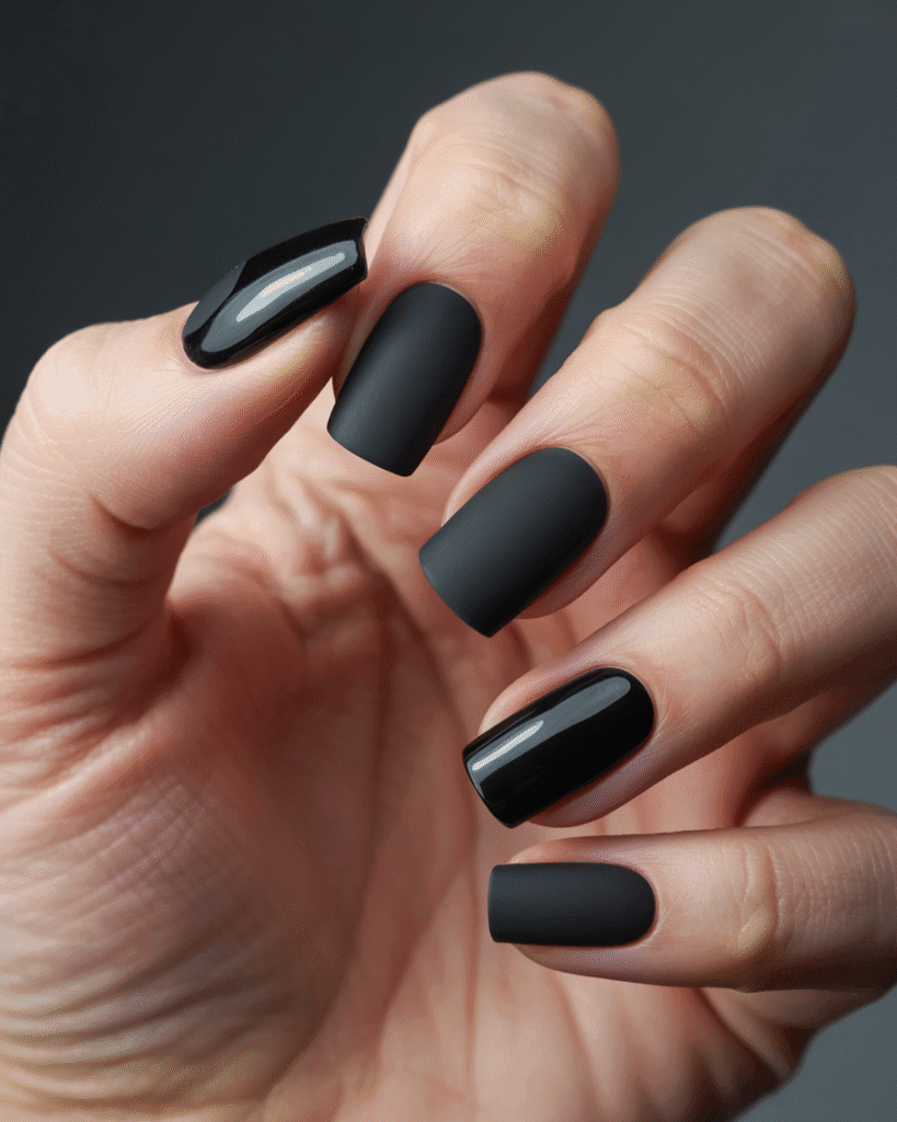 Mattschwarze Nägel mit Glanz-Elementen