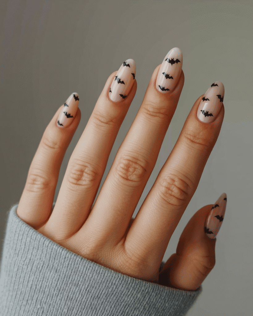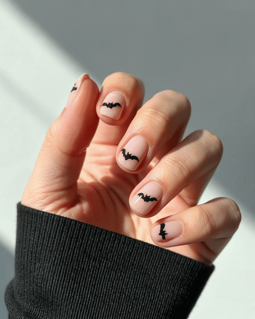 Nude Nails mit Mini-Fledermäusen