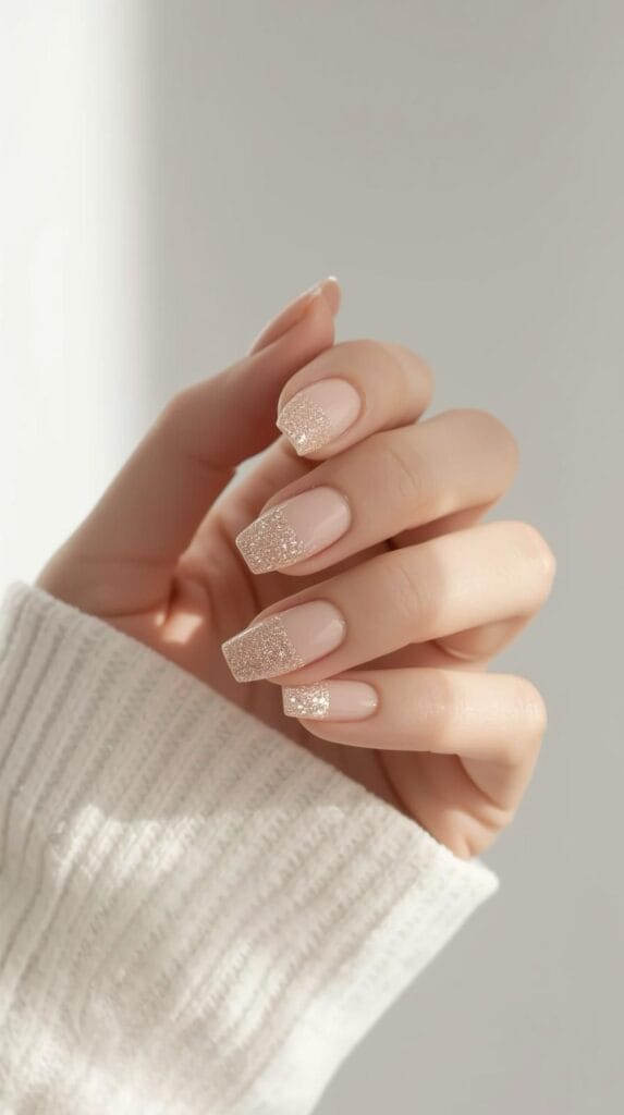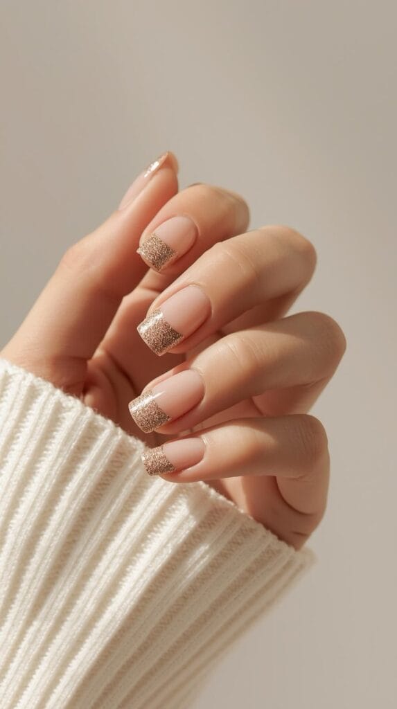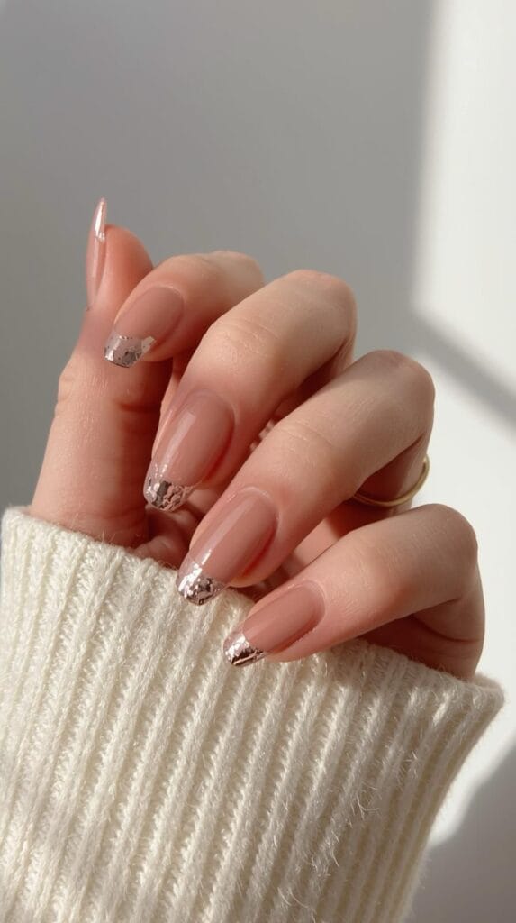 - French Nails mit Twist (z. B. goldene Spitze oder matte Basis)