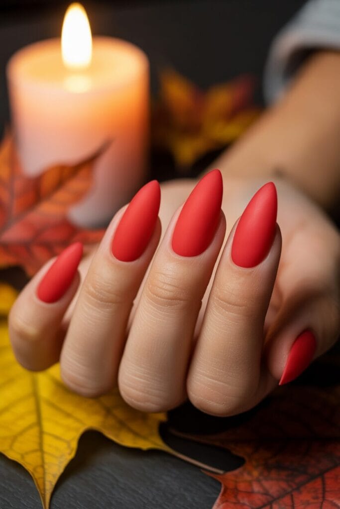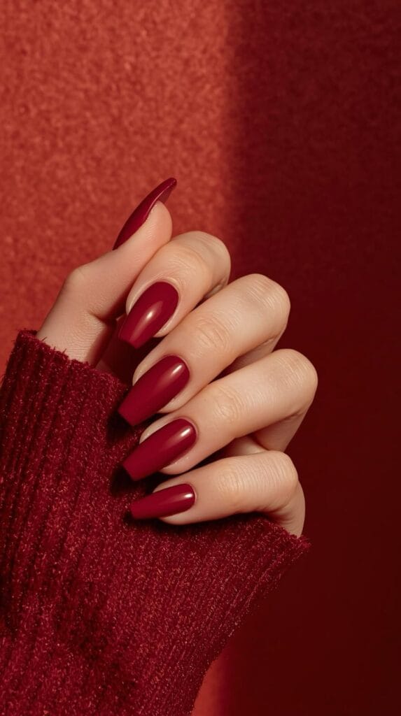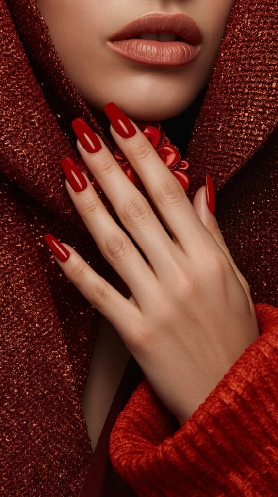 Velvet Red Nails – ein samtiges Finish, das das Licht weich reflektiert und unglaublich edel wirkt.