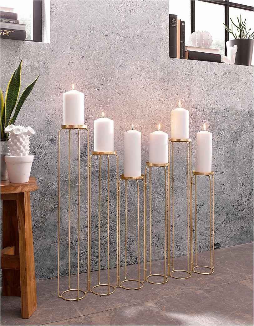 Kerzenständer in Gold sind zeitlose Klassiker. Sie lassen sich wunderbar mit bunten Kerzen in Pastelltönen kombinieren. So entsteht ein modernes Farbspiel, das jedem Raum Eleganz verleiht.