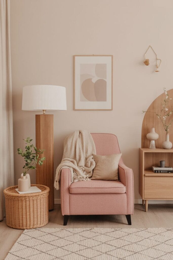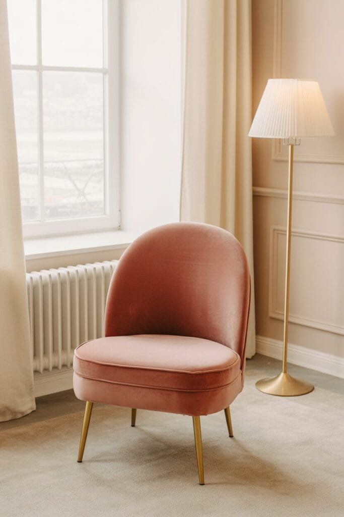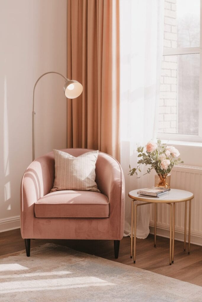 Mit einem rosafarbenen Stuhl oder Sessel setzt du ein sanftes Statement – verspielt, aber stilvoll.