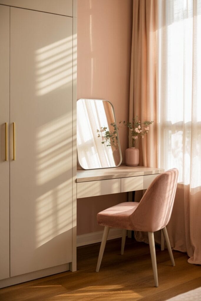 - Schlafzimmer: gepolsterter Stuhl für Schminktisch oder Leseecke