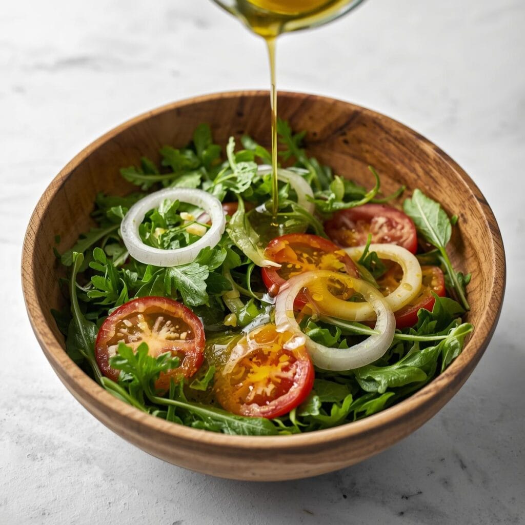 - Mit Olivenöl, Zitronensaft, Salz und Pfeffer anmachen.