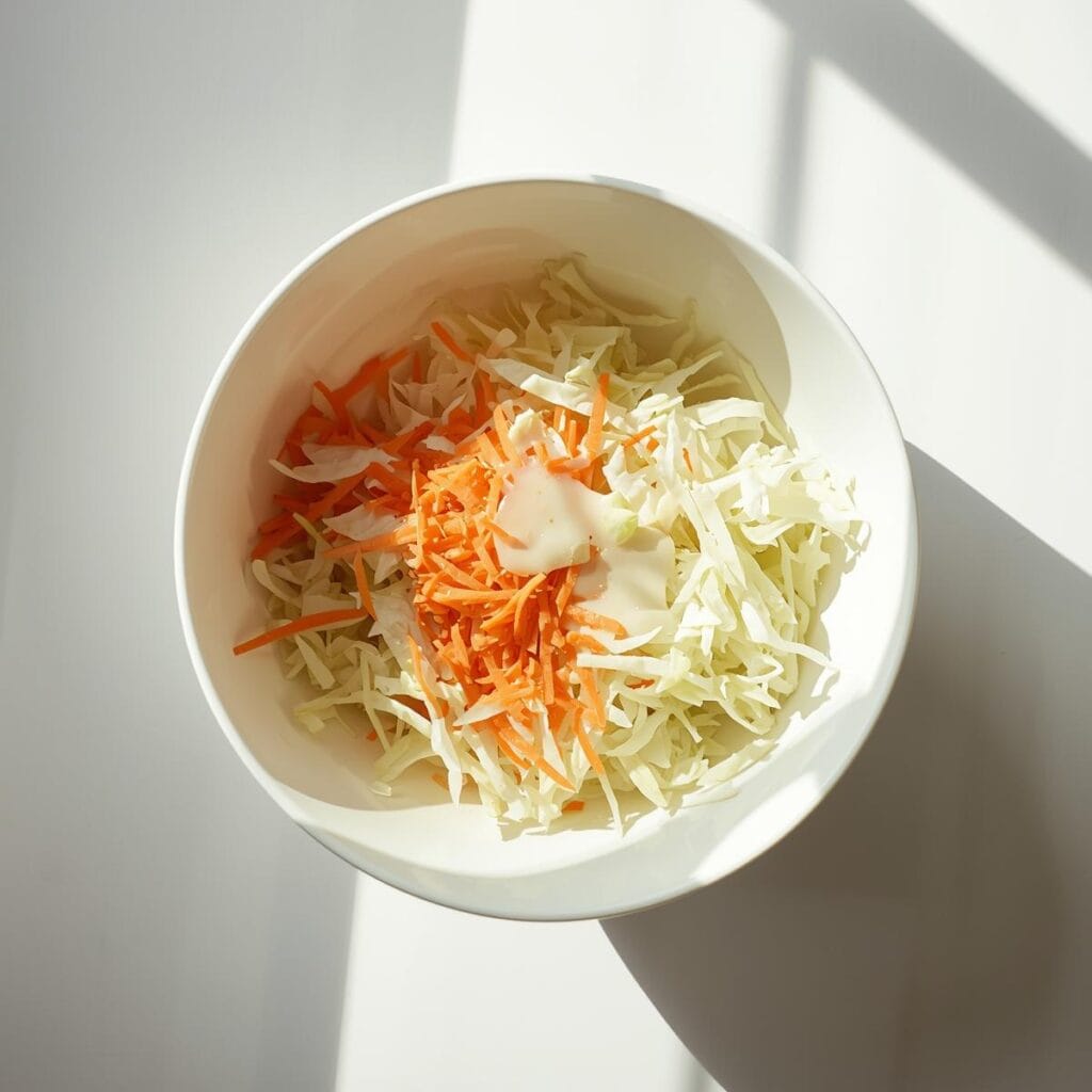 - Weißkohl fein hobeln, Karotten raspeln.