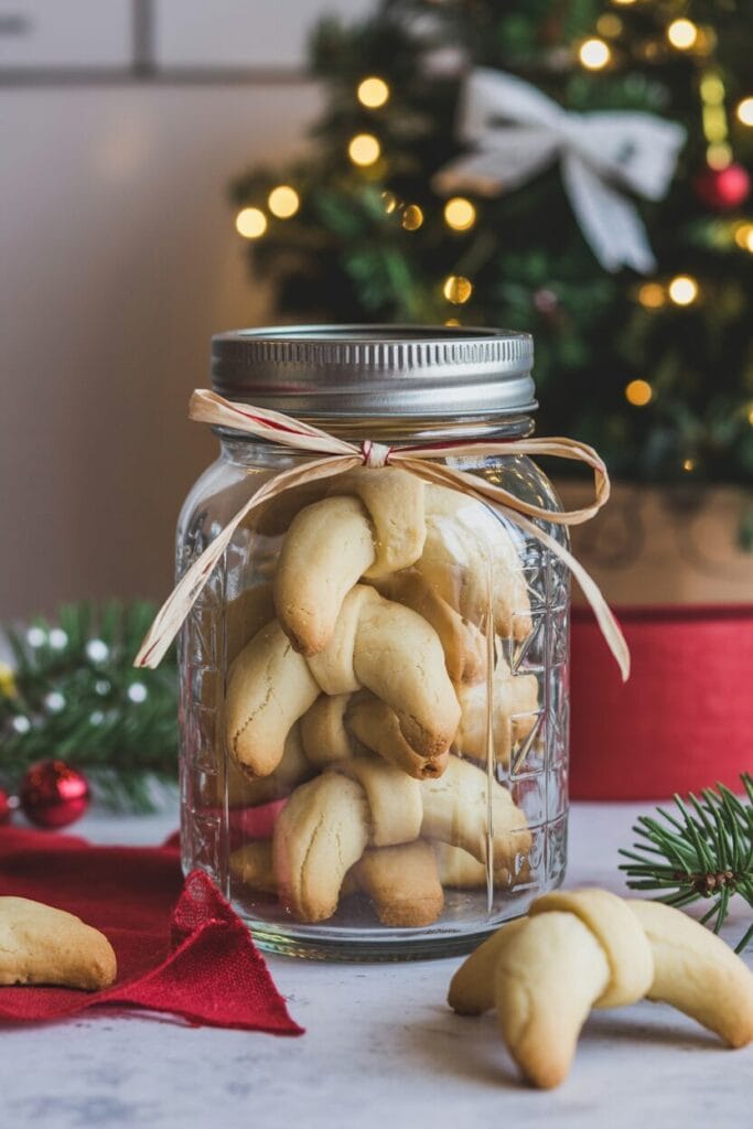 In einer hübschen Dose oder einem Glas mit Schleife sind Vanillekipferl ein herzliches Geschenk aus der Küche.